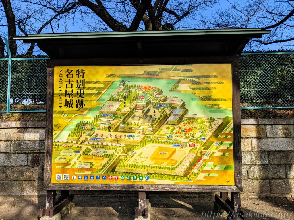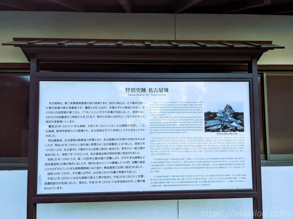 こちらが名古屋城の園内マップ、東門で観覧券(大人500円)を購入します。マップも観覧券もキンキラキンですね~!名古屋城の詳しい説明もありました。
