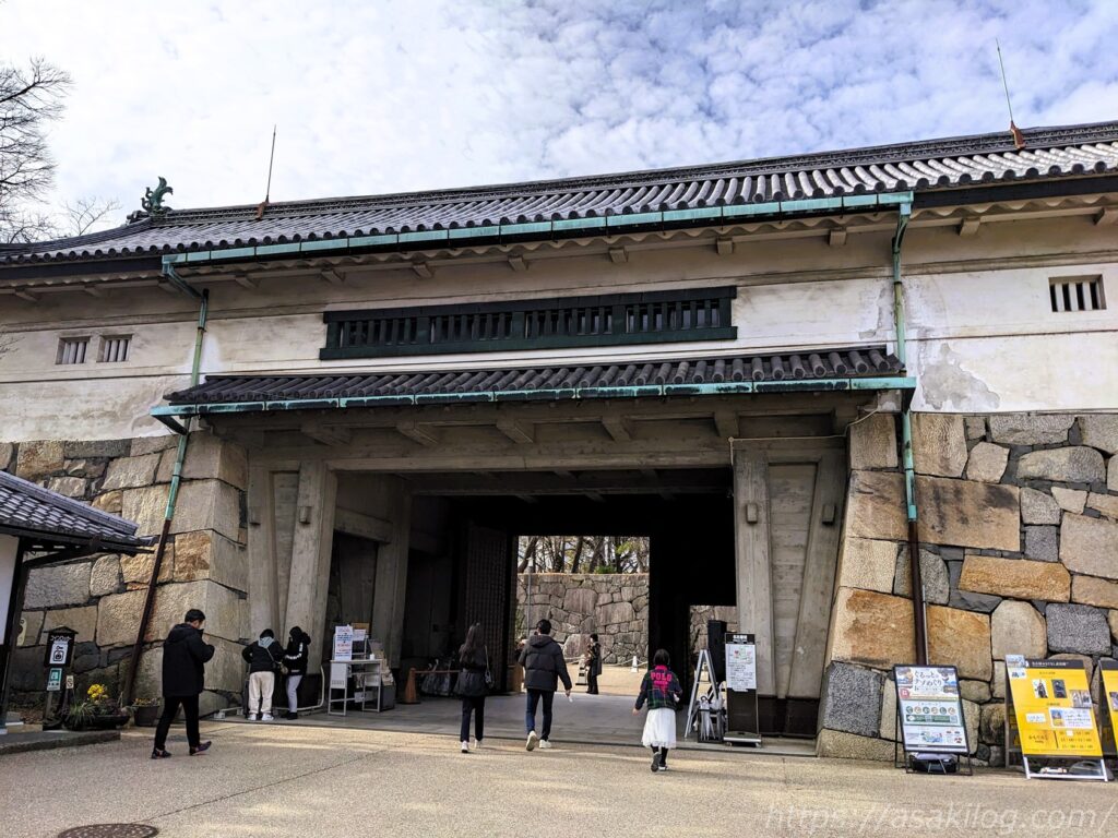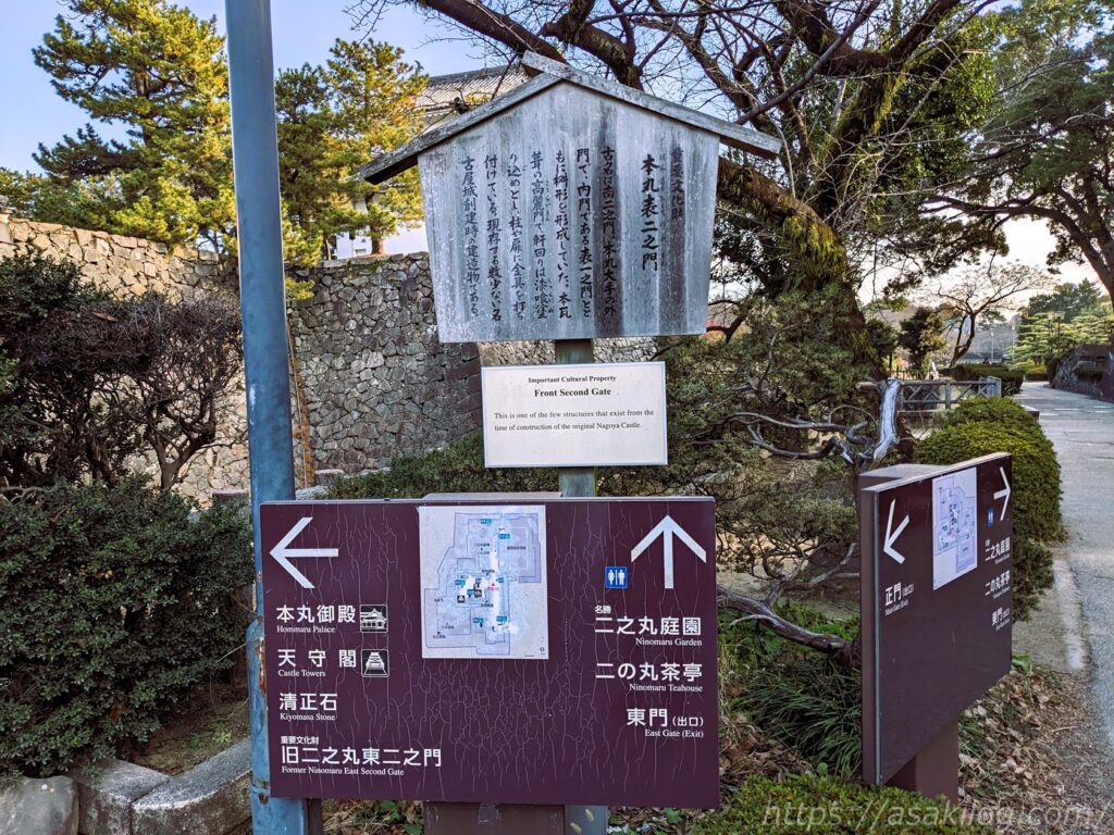 本丸エリア入口の「本丸表二之門(ほんまるおもてにのもん)」は、名古屋城創建当時の建造物で、重要文化財に指定されています。
