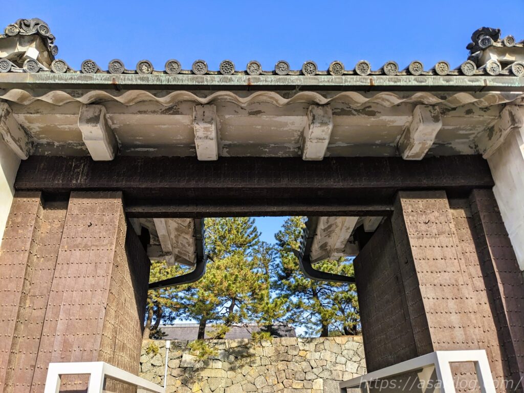 本丸北側と御深井丸エリアを繋ぐ門で、厳重に施錠されていたため「開かずの御門」と呼ばれていたそう。こちらも昭和20年(1945年)に焼失後、昭和53年に復元されています。