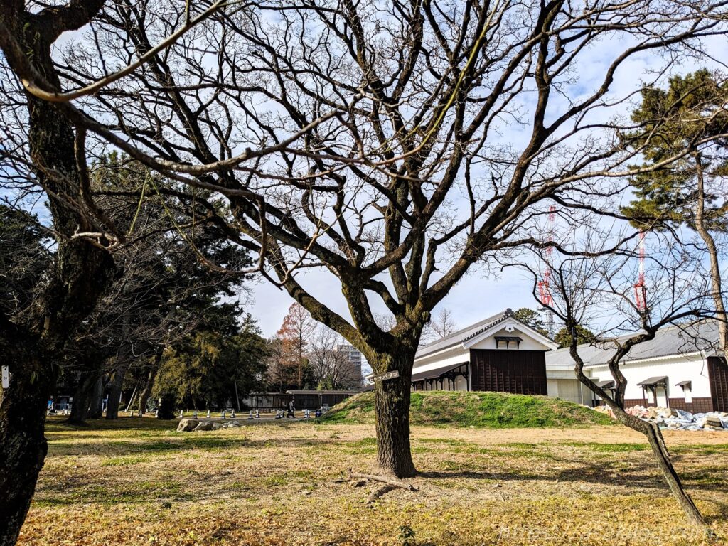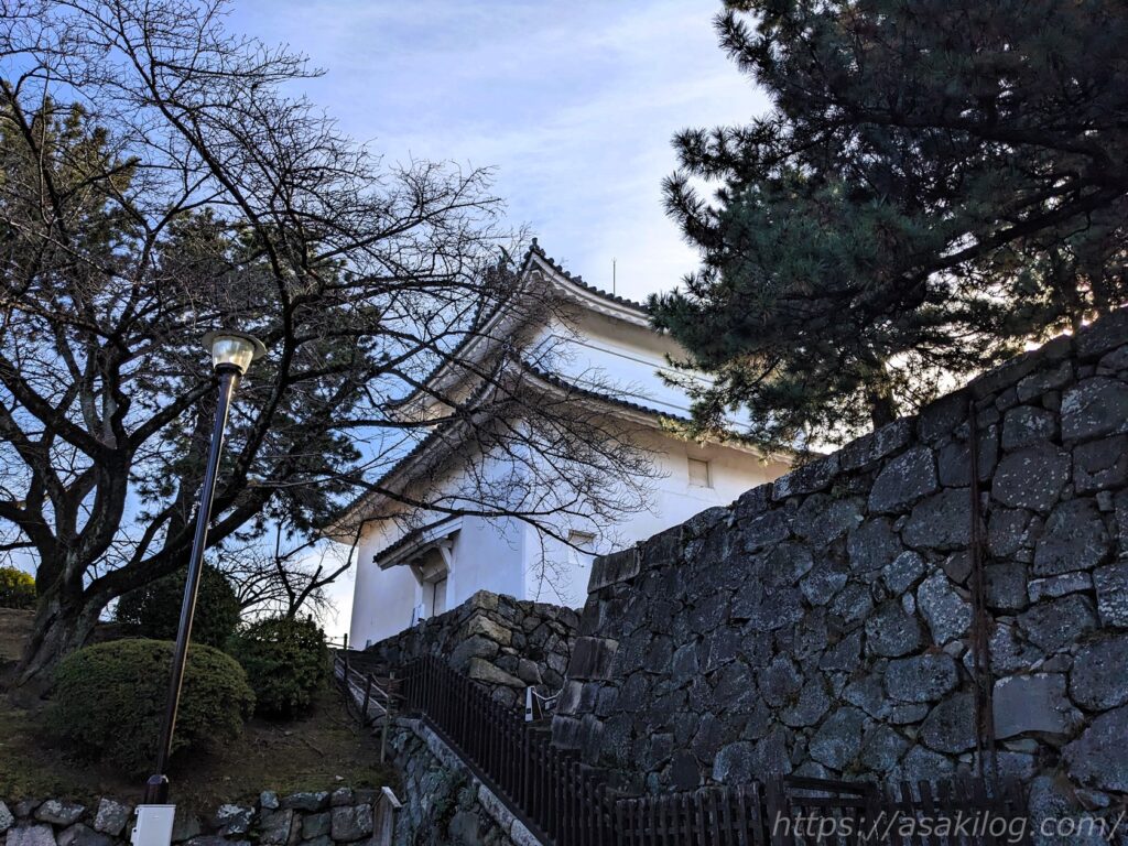御深井丸エリア~西之丸エリアから見えた「西南隅櫓(せいなんすみやぐら)」。本丸エリア内に建っていて、別名「未申櫓(ひつじさるやぐら)」と呼ばれているそう。