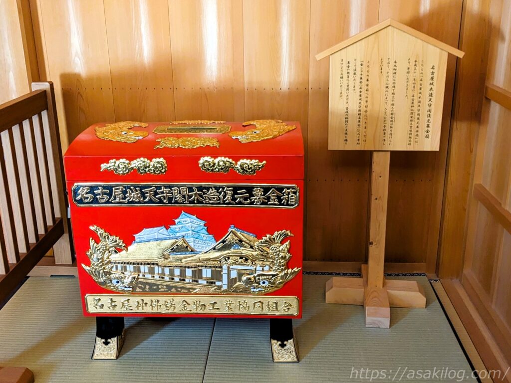 最後の写真は「名古屋城木造天守閣復元募金箱」。募金箱までキンキラキンでゴージャス!