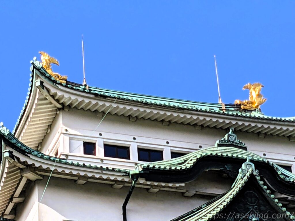 名古屋城の天守閣といえば、てっぺんに輝く2体の金のシャチホコがシンボル的存在ですね。