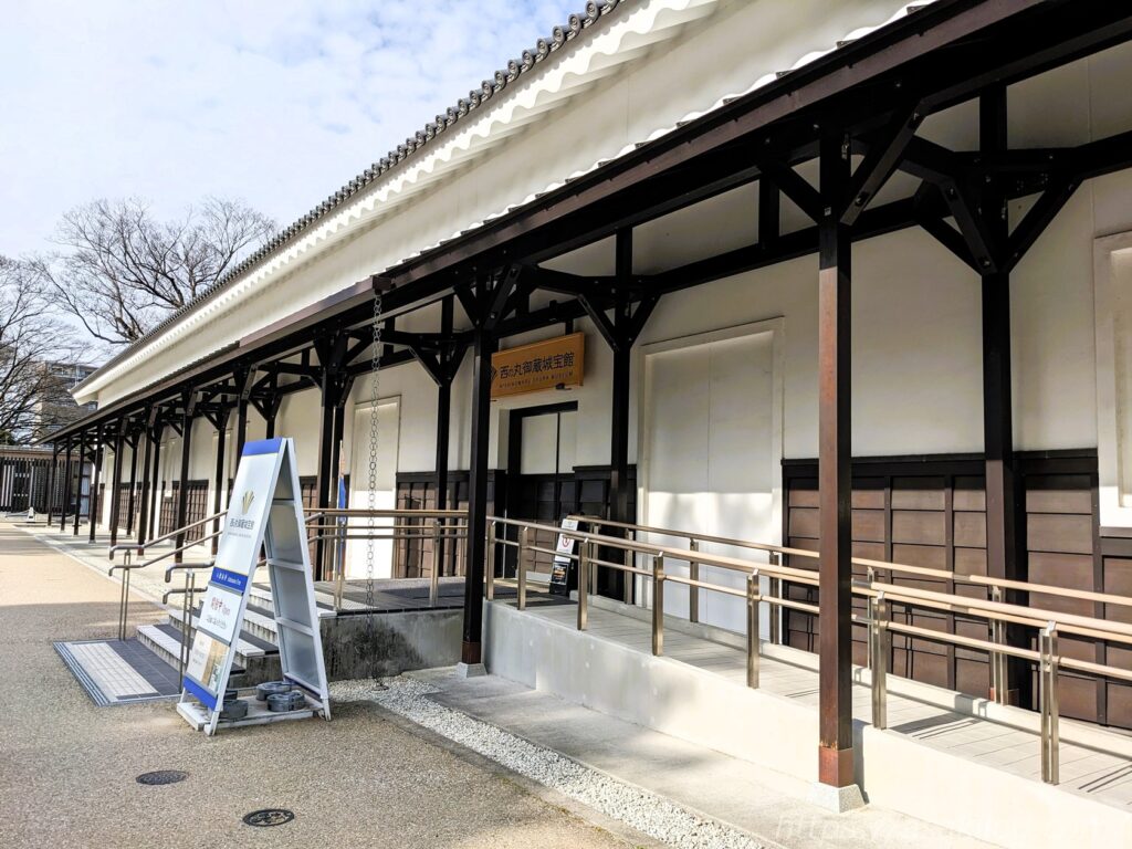 西之丸エリアにある「西の丸御蔵城宝館(にしのまるおくらじょうほうかん)」は、令和3年(2021年)11月に開館。国指定の重要文化財「名古屋城本丸御殿障壁画」をはじめ、名古屋城の文化財・所蔵品をさまざまなテーマのもとに公開しています。