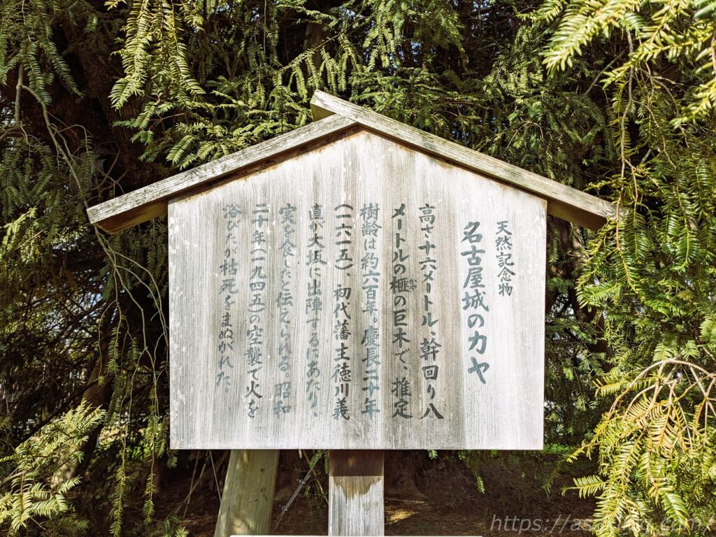 西之丸エリアには、推定樹齢600年の市内唯一の国の天然記念物「名古屋城のカヤ」があります。