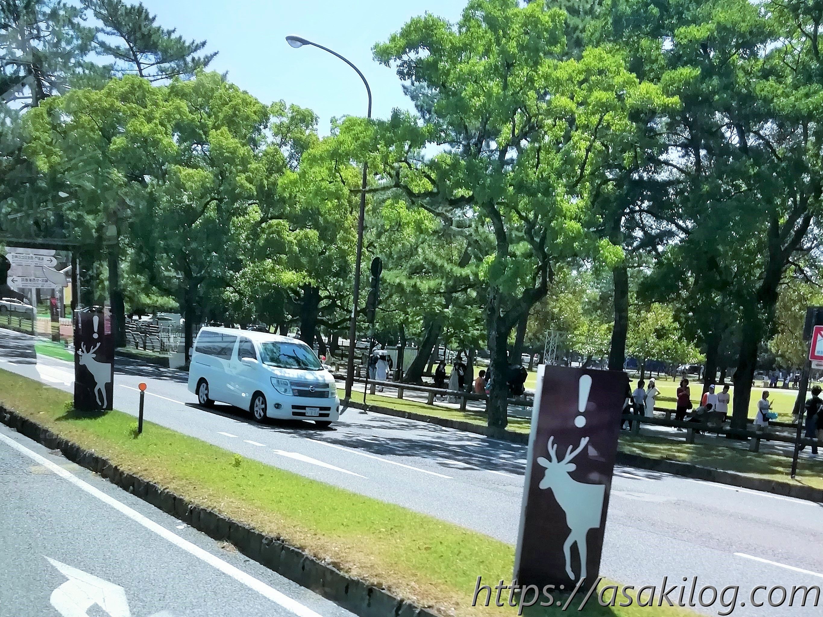 奈良公園が近づくと、さすが奈良。こんな看板が道路にたくさん!