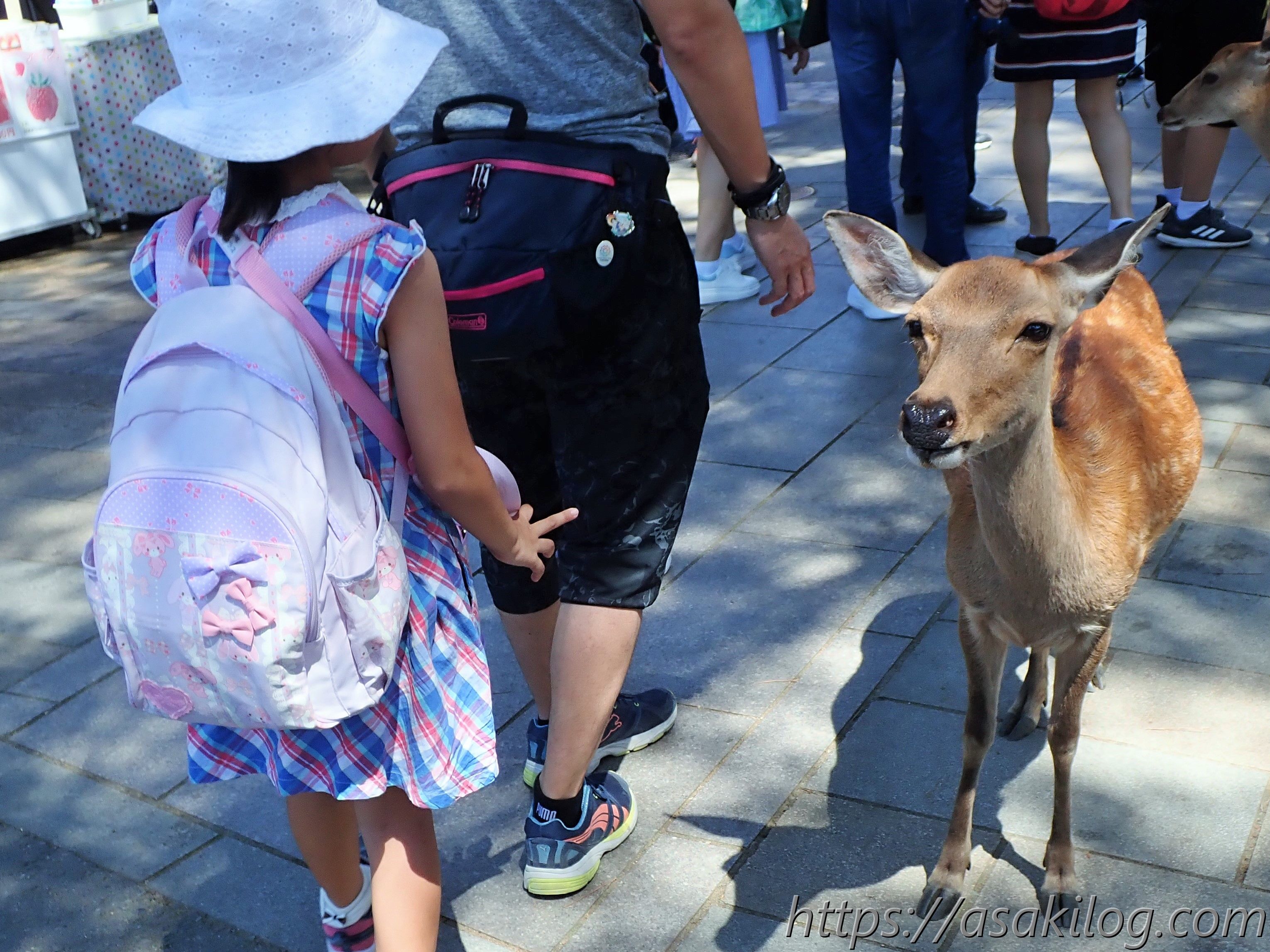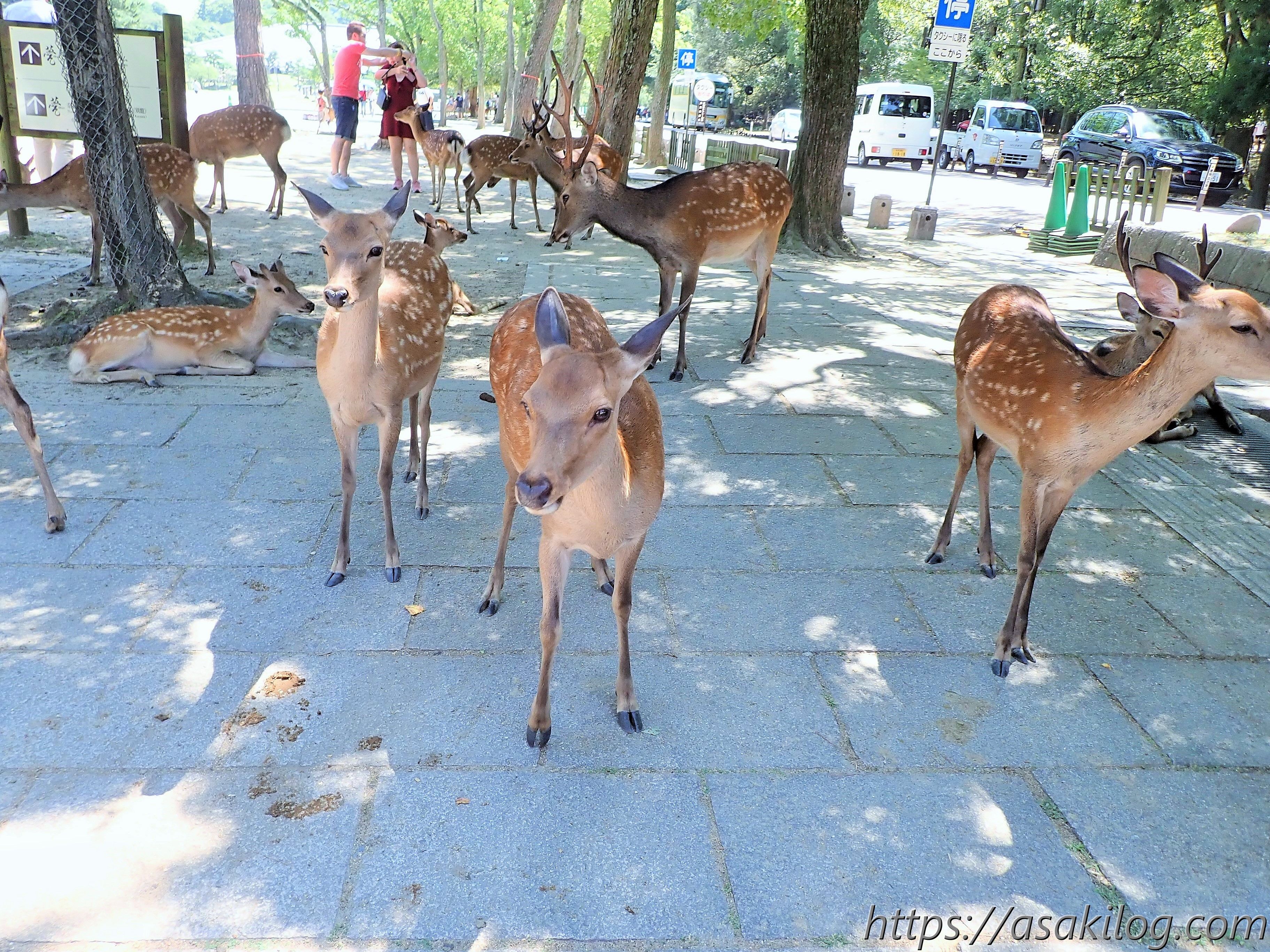 私が訪れた時は、観光客が持ったビニール袋に噛みついている鹿さんを見かけました。お土産物屋さんが並んでいる場所だったので、おそらくお土産が入っていたと思うのですが、鹿さんは中に鹿せんべいが入っていると勘違いしたのかも・・・。