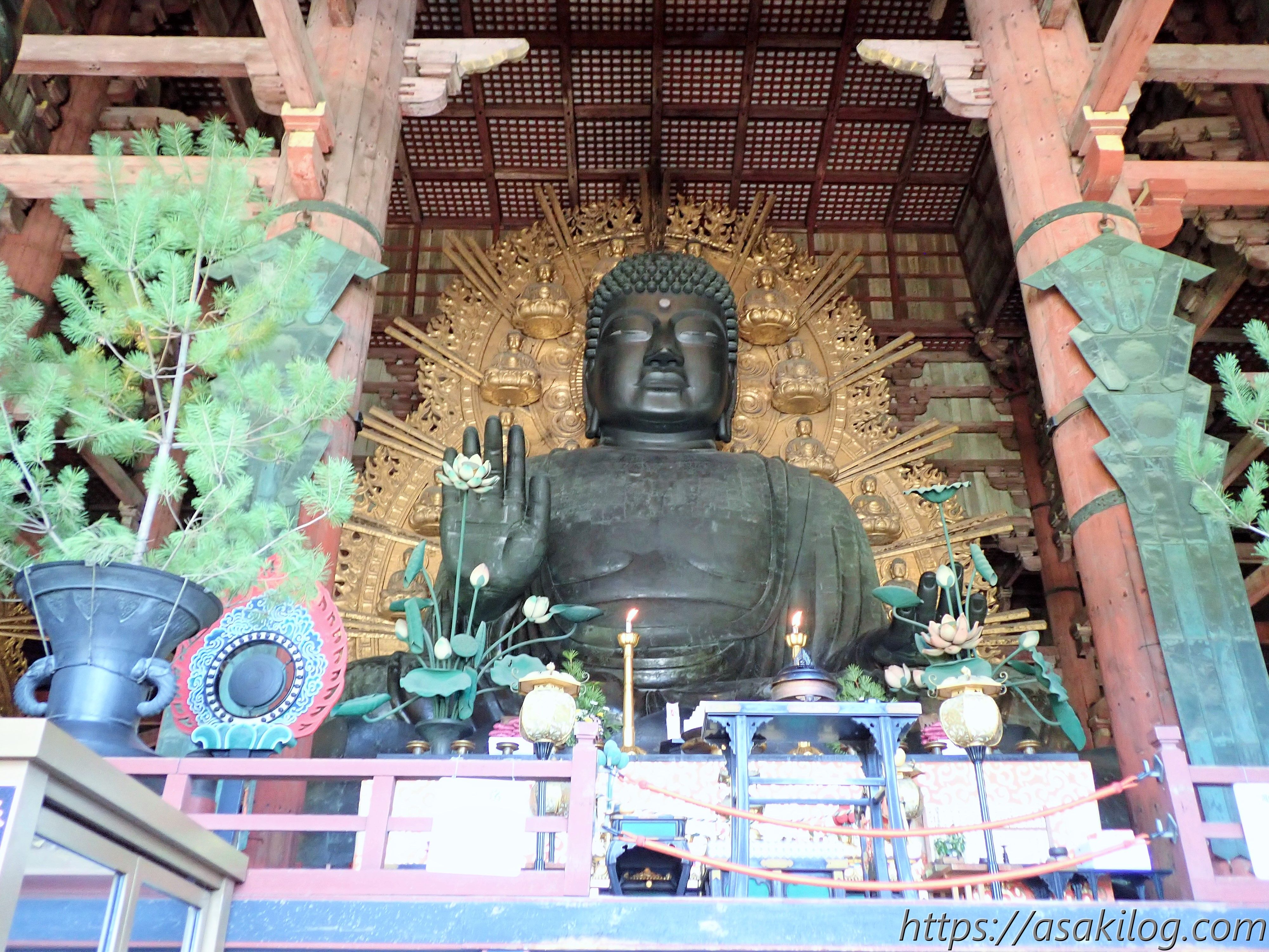 こちらが「大仏さま」。見上げるほどの大きさで迫力があります。正式な名前は「盧舎那仏(るしゃなぶつ)」なんだそう。