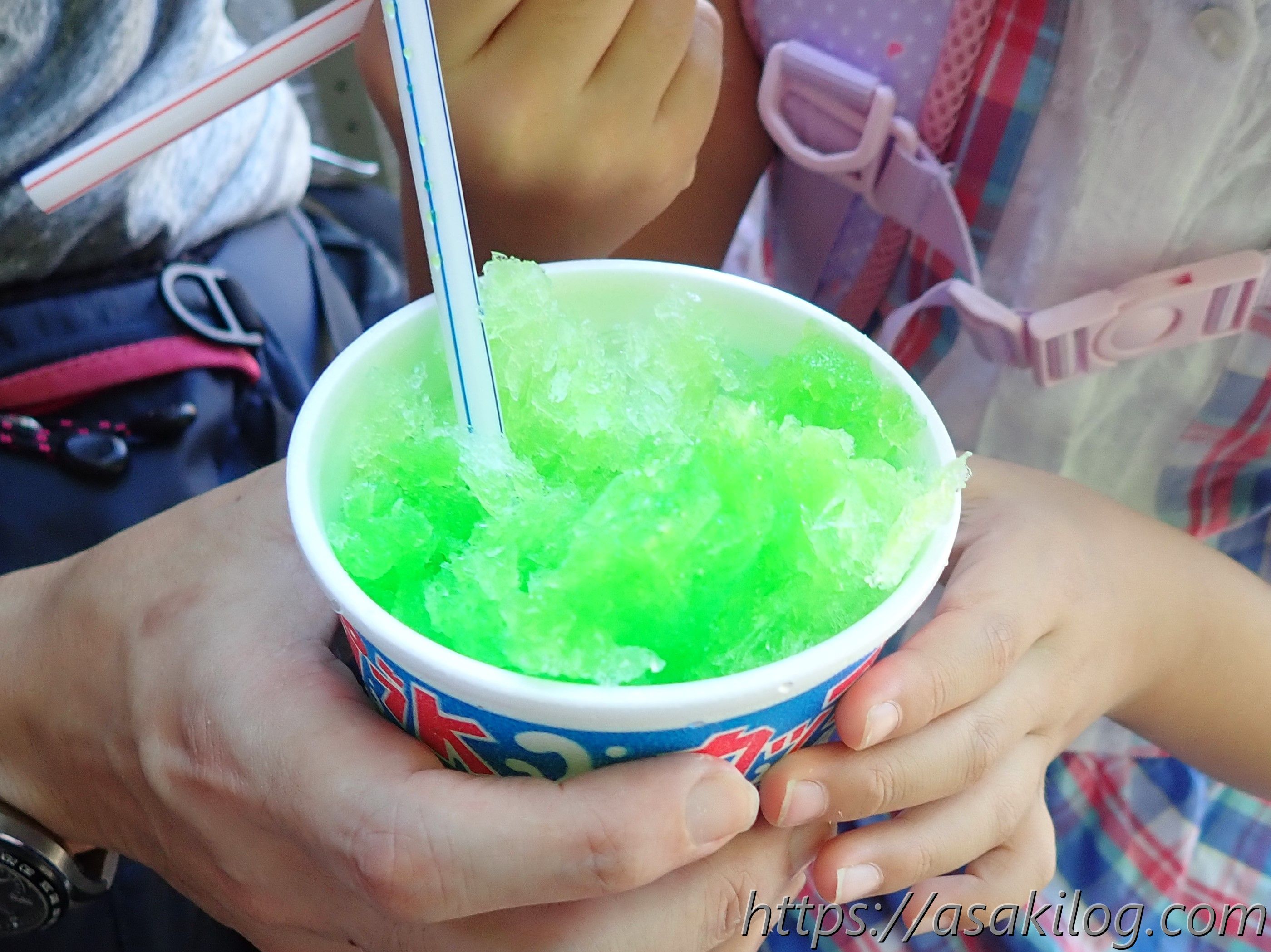 大仏殿を拝観したあとは、娘お待ちかねの休憩タイム。夫と娘はかき氷を堪能。