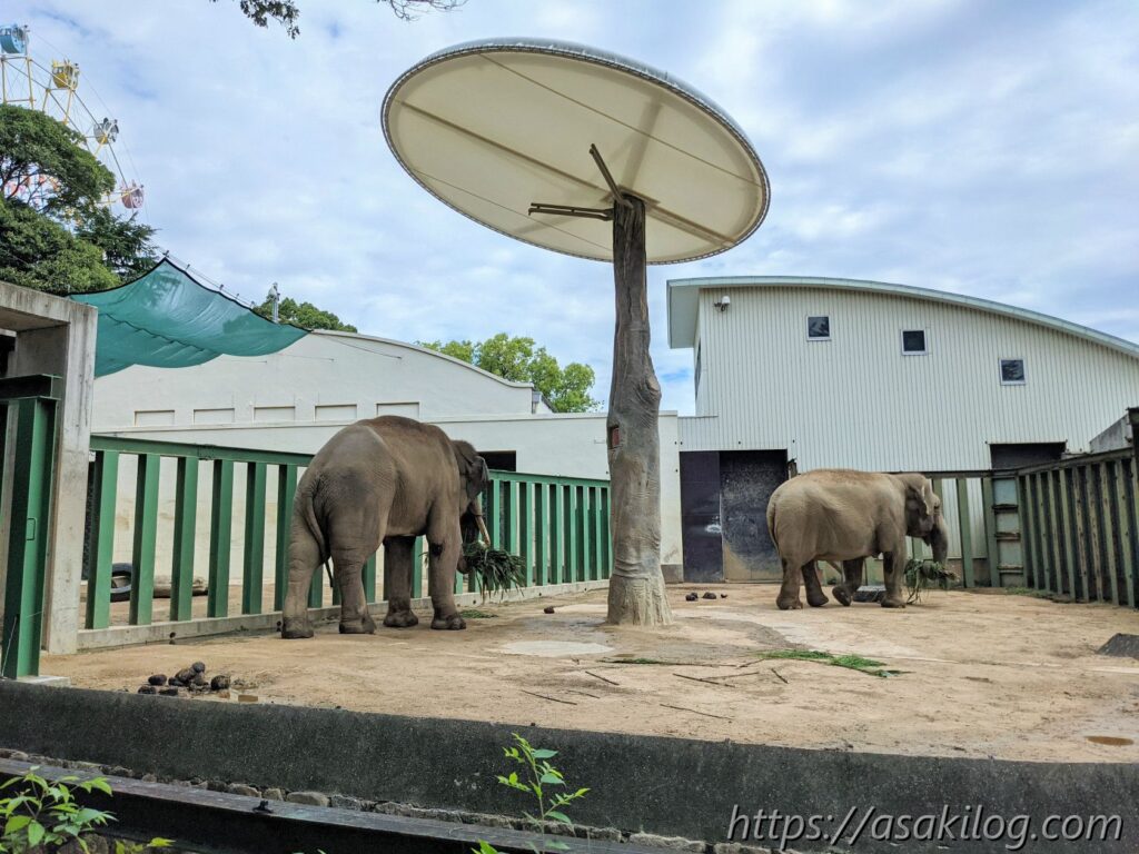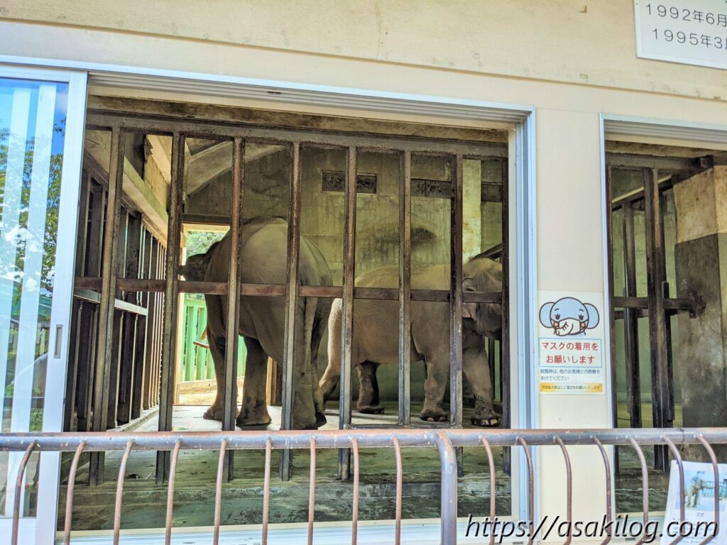 こちらは裏側コーナー。ちょうど象2頭が入れ替わる姿を観察できました。おりこうさん。