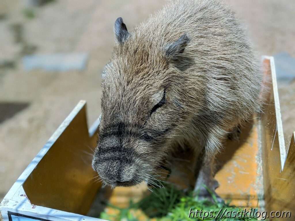 カピバラはとっても眠そうな顔しながら食事中。ヒツジ・ヤギも放し飼いで食事中でした。以前はウサギやモルモットとふれあえる時間があったはず・・・今もやってるのかな?