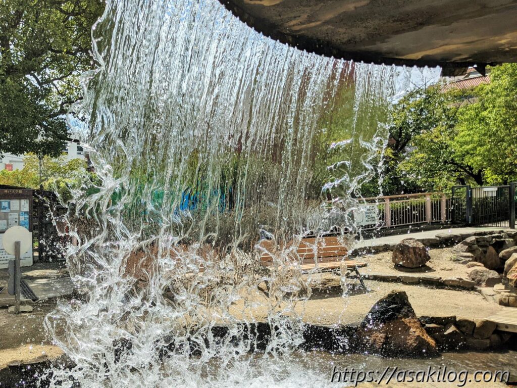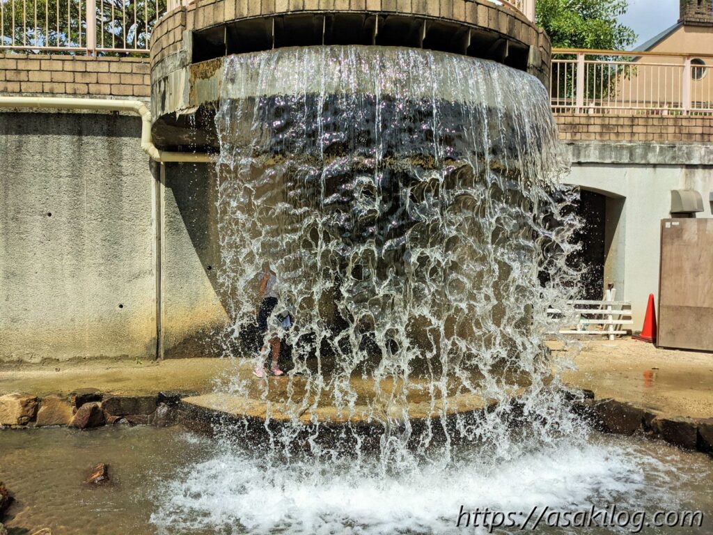 ふれあい広場にはちょっとした滝コーナー?もあります。この日はとっても暑かったので、涼しげで気持ち良かった~(滝の裏側を娘が歩いてます)