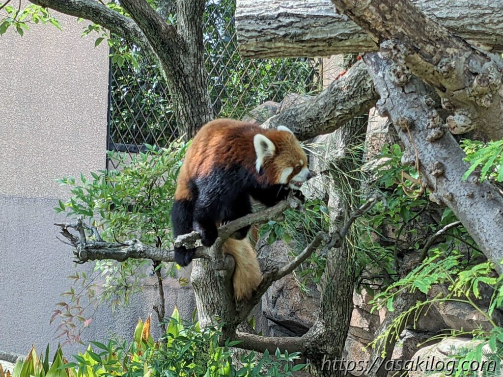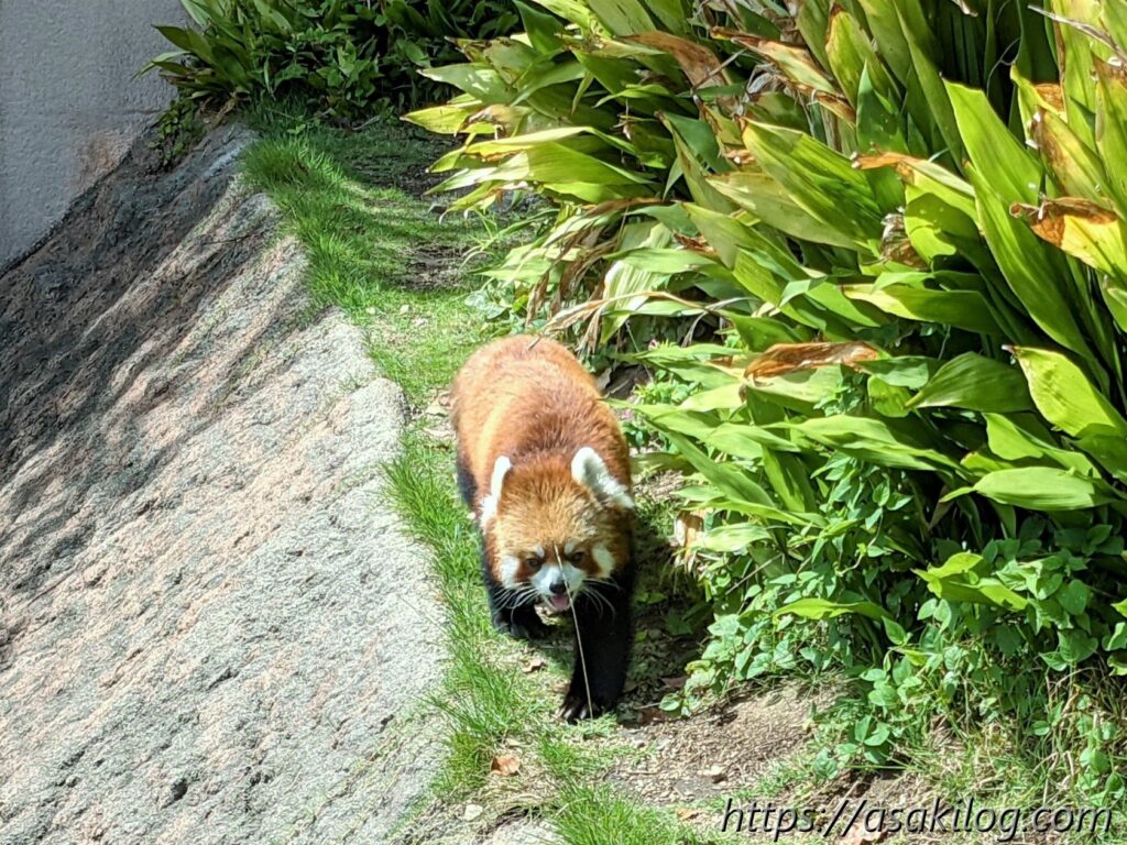 こちらはシセンレッサーパンダのジャズ。夜行性・昼間は樹上で眠っているはずですが、この日はお散歩してました。笑っているかのように見える表情が可愛らしい。