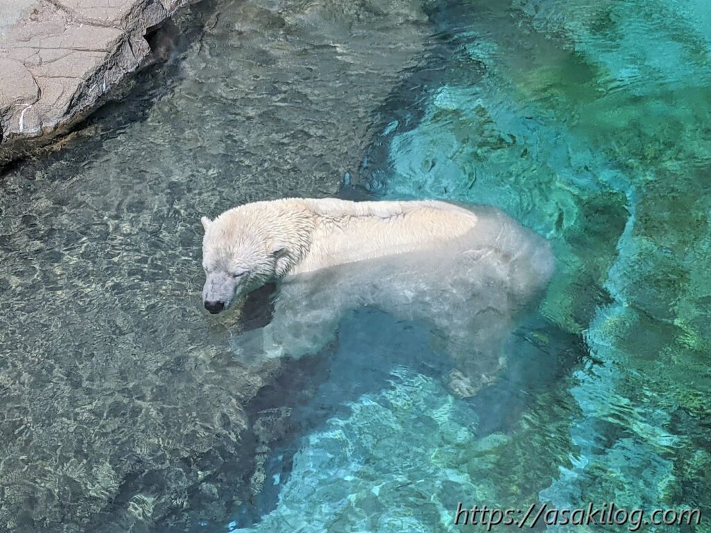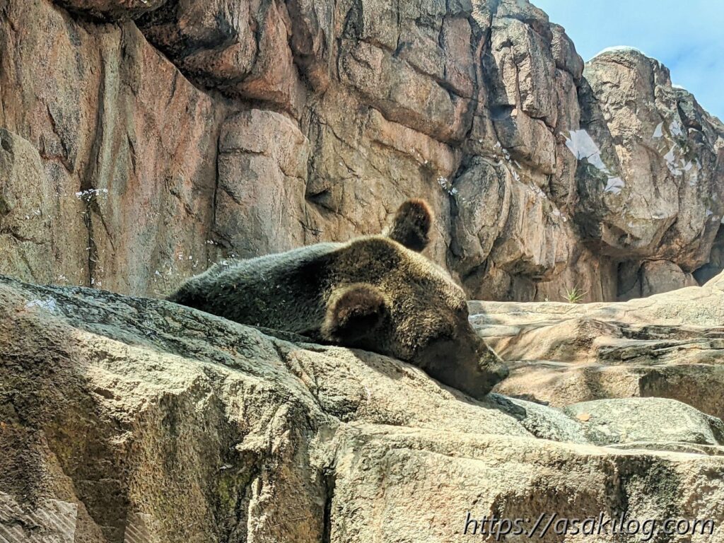 ホッキョクグマは暑かったのか、ずーっと水の中に入っていました。エゾヒグマはひたすら昼寝中・・獰猛なイメージがあるんやけどな。