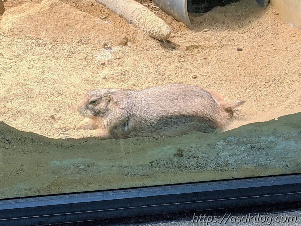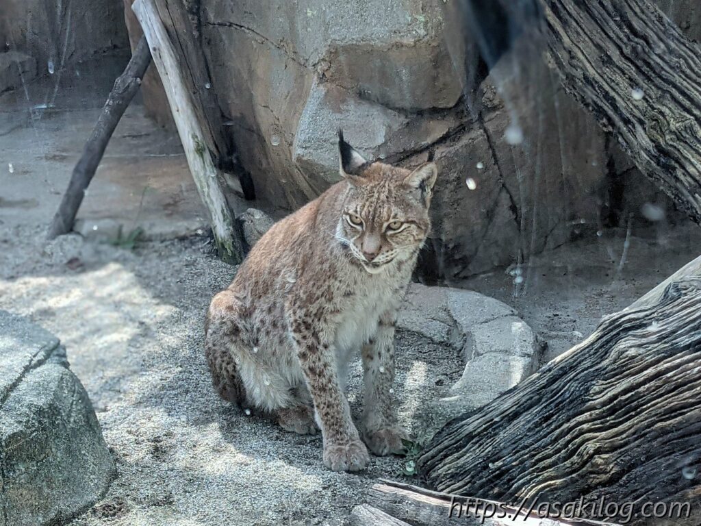 オグロプレーリードッグのイリエ君は、ペタンとした姿のまま動かず。シベリアオオヤマネコは大きめサイズで、小型の哺乳類や鳥類を食べるらしい。