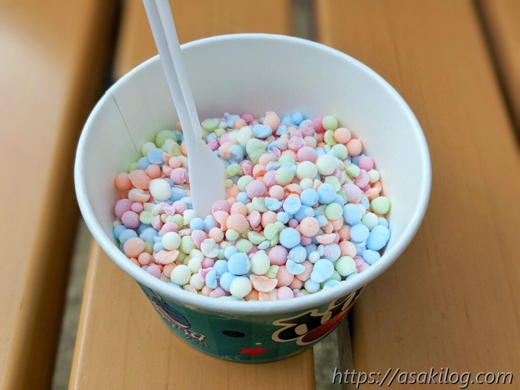 こちらはディッピンドッツアイスクリーム、レギュラーサイズ400円。以前どこかで車を見かけたことあるけど、今回初めて食べてみました。ツブツブした不思議な食感のアイス?やな。