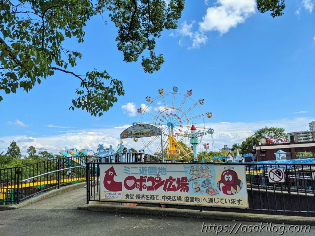 遊園地ゾーンは動物園の中にあるため、いろいろな場所から入れます。一番左の写真はアジアゾウの奥から、真ん中の写真は動物科学資料館側から入った景色。レトロなロボコン、いつからあるの?