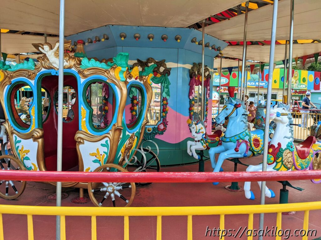 メリーゴーランドは定番。遊園地に行くと絶対に乗りたいらしい・・・。