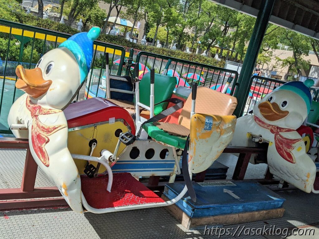 サイクルモノレールは私も乗ってみました。アヒルがこれまたレトロ~。