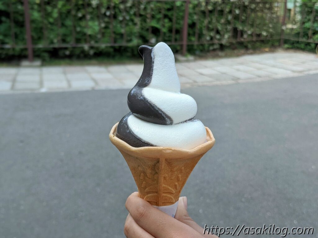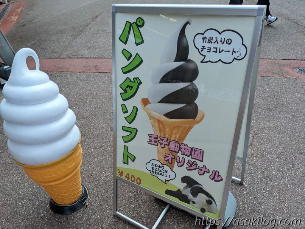こちらはパンダソフト400円。王子動物園オリジナルのソフトクリームで、竹炭入りのチョコレートだとか?! 冷たくて美味しかった~。