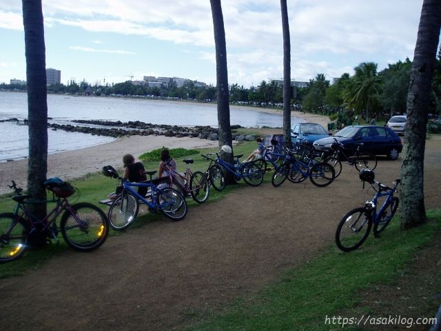 自転車に乗ってる人もよく見かけました。ニューカレドニアでは、自転車はオートバイと同じ扱いになり、歩道ではなく車道を走るのが原則となるそうです。残念ながら、乗る機会がありませんでした。(びびって乗らなかったという話も。^^;)