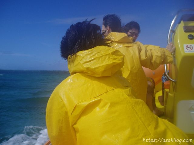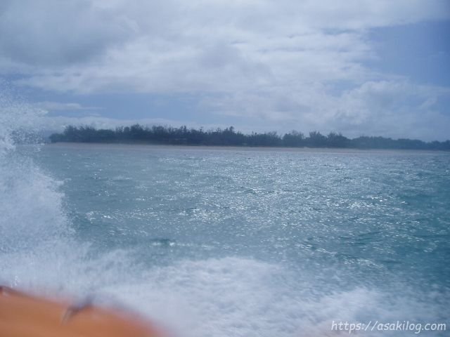 海は大荒れ。揺れる揺れる!・・・ボートから落ちないよう必死。お尻が痛いです。