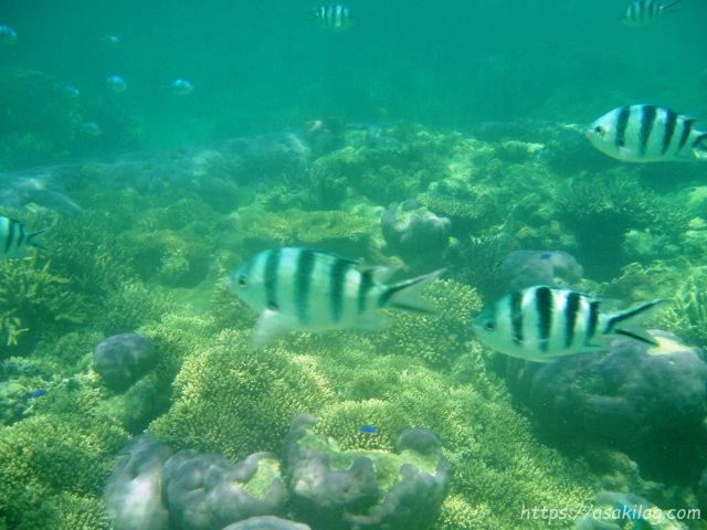 ニューカレドニア2008:テニア島シュノーケリング 2008/4/11 2018/2/15 シュノーケリング シェアする LINE! ※本サイトでは広告が含まれる場合があります。 テニア島でシュノーケリング。もちろん、水中写真を撮りました!(^-^) まずは、砂地の写真。波の後が綺麗です。 そして魚たち。いっぱいいました! そして、色とりどりのさんご礁。 とても透明度が高く、クリアな世界でした・・・☆