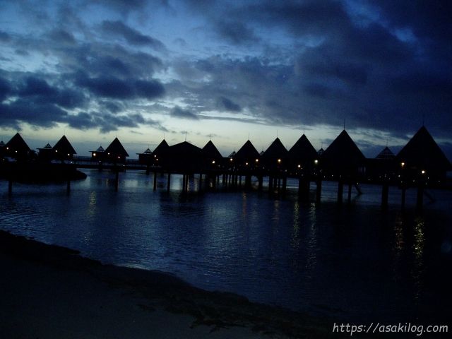 ニューカレドニア2008:メトル島6 2008/7/16 2025/2/28 南の島/南国, 海外旅行 シェアする LINE! ※本サイトでは広告が含まれる場合があります。 前回、メトル島夕暮れの写真をUPしましたが、今回は違う角度からの、夕暮れの写真をUPしておきます。(一部陸側の写真あり) まだ少し明るいです。 少し暗くなってきて、 雲が少しずつ出てきたと思ったら あれ?なんだか怪しい雲行き? 真っ暗になってしまいました。 この後、メトル島は、予想もしなかった事態に・・・(汗) 次に続く・・・。