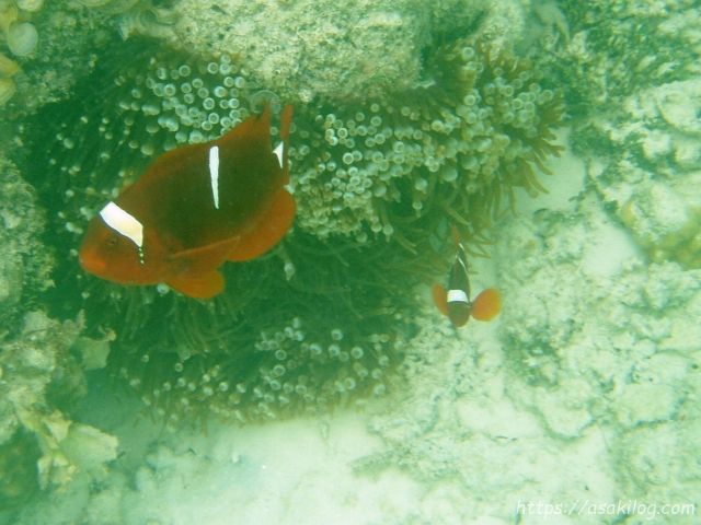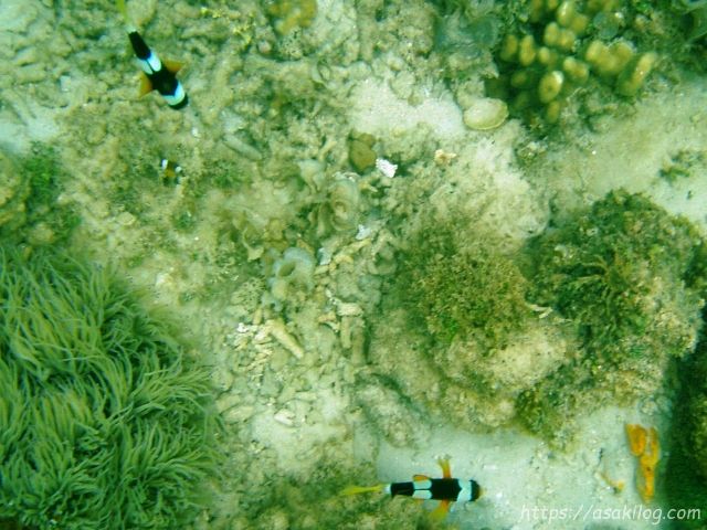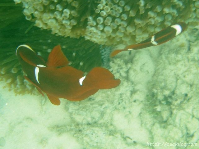マレーシア2009:サピ島 シュノーケリング(クマノミ編) 2009/7/12 2020/7/23 シュノーケリング シェアする LINE! ※本サイトでは広告が含まれる場合があります。 サピ島到着後、早速シュノーケリングしてみることに!(一番の目的はコレです♪) 天気が曇り(時々スコール)な感じだったので、透明度はイマイチでしたが、それなりにいろんな魚を見つけました。 まずは、クマノミの写真をUPしようと思います。 カクレクマノミ スパインチーク・アネモネフィッシュ 普通のクマノミ(多分。笑) 他の種類もいたかも?ですが、私が見つけたのはこの3種類。 クマノミ可愛くて大好きです。今回撮った水中写真の半分がクマノミでした(笑)