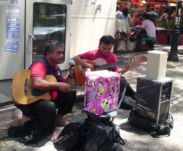 コタキナバルのストリートミュージシャン。何故か、ボーカルのおじさんは、裸足です(^▽^)
