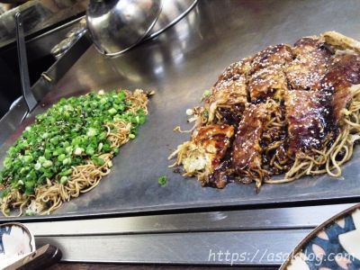 右が「麺入りお好み焼き」、左が「広島スペシャル」注意)1人で食べたのではありません(笑)