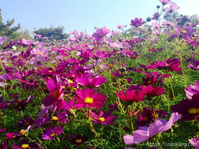 まずは、近所のコスモス畑。去年も行ったので2回目です。