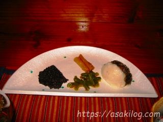 琉球料理の1皿。よいタイミングで、少しずつ、いろんな料理が出され、その間も、カウンター越しの、おとーさん・おかーさんと、心地よい会話が進む。