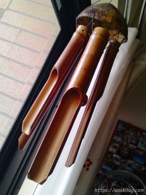 からんころんと、心地よい音がする「竹風鈴」、以前から欲しくて、ようやくゲット!そよ風が心地よい季節なんかにも、よりよい雰囲気出してくれちゃいます。