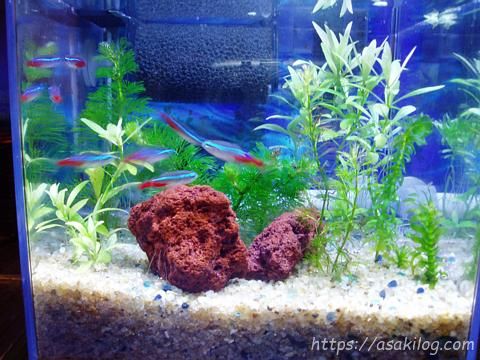 現在、水槽の中には、ネオンテトラ+オトシンがいます。