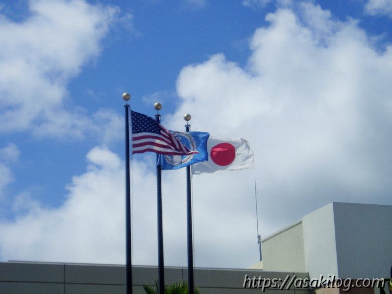 真ん中の水色の旗が、サイパン島がある北マリアナ諸島の旗です。