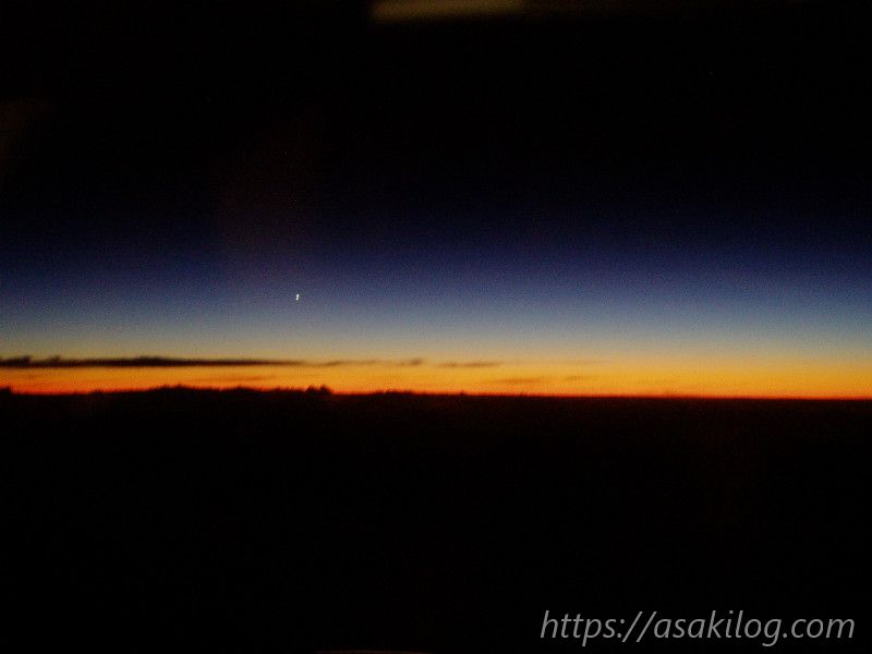 ちょうど夕方の便だったので、離陸後、ものすごく綺麗な光の海が見れました。きらきら。