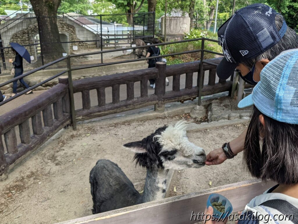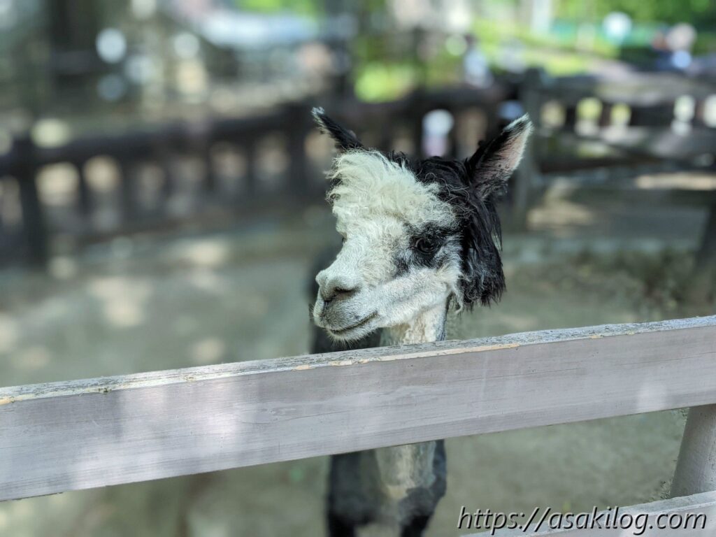 入口から入ってすぐに出迎えてくれたのが、アルパカさん。五月山動物園には2頭いました。こちらのアルパカさん(名前忘れた)は、とっても穏やかで可愛かった~。