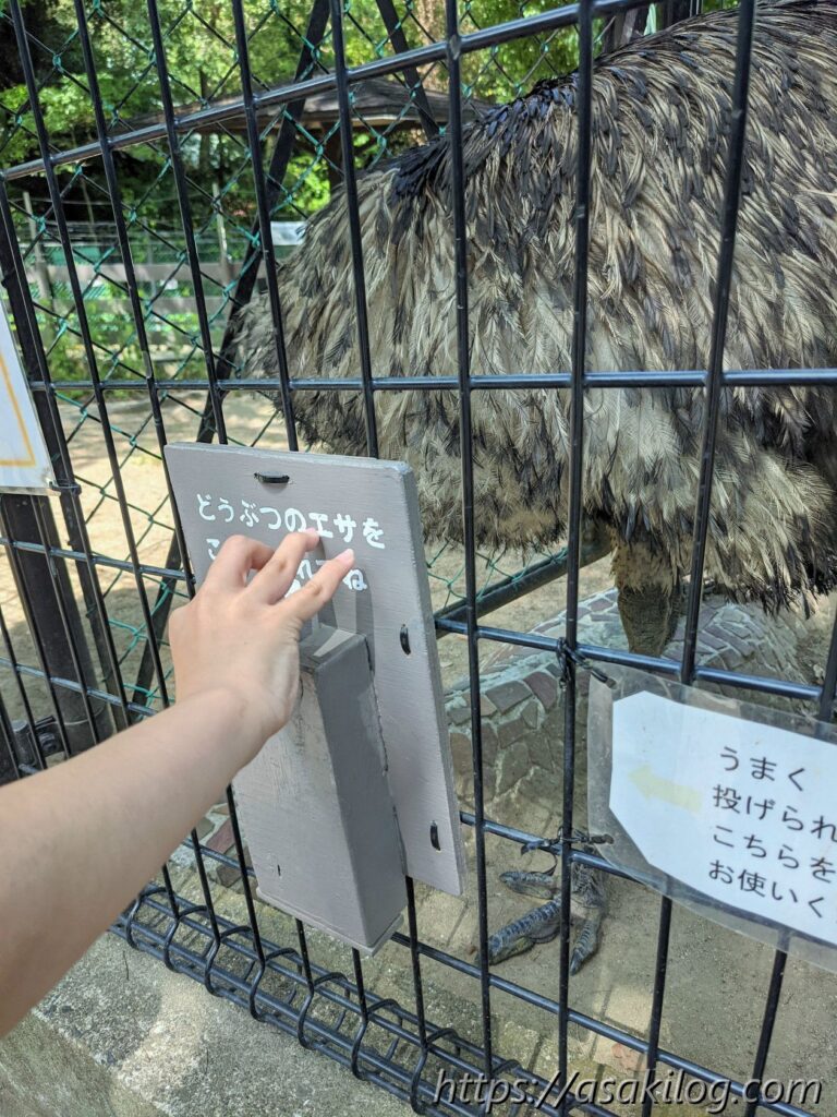 1人1カプセルずつ買ったというのに、うちの娘さんは「直接餌をあげるのが怖い!」とびびっていました・・・。エミューさんなら「どうぶつのエサをここにいれてね↓」の箱に餌を入れたら食べてくれたので良かった。