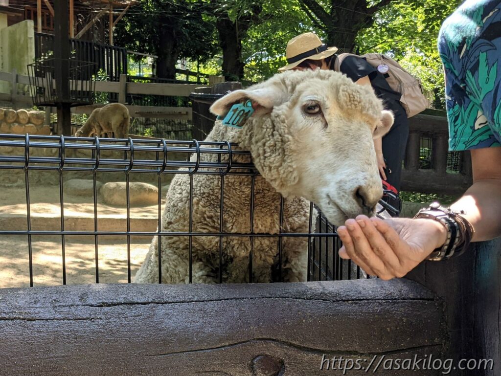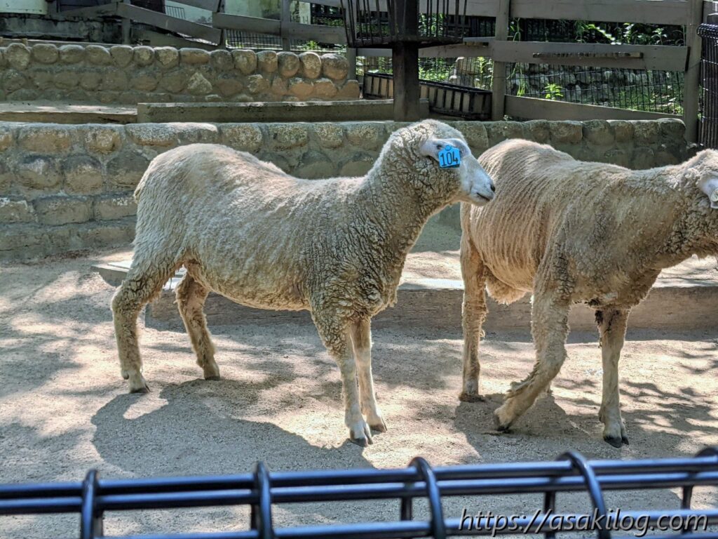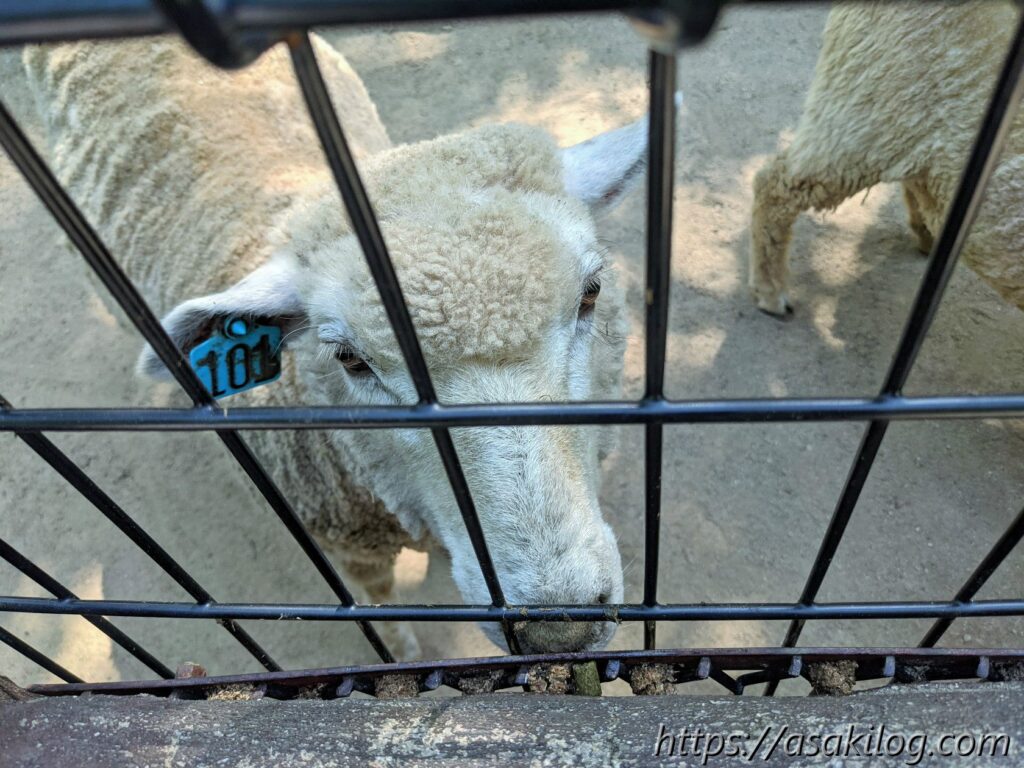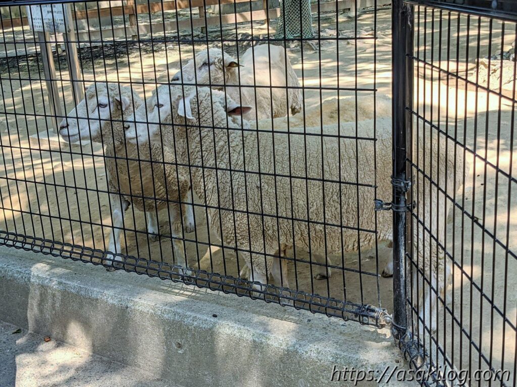 ヒツジさんは、動物園入口の近くと、奥の2カ所にいました。餌のカプセルを持っているのに気づくと、わらわらと群がってきたのが面白かった。
