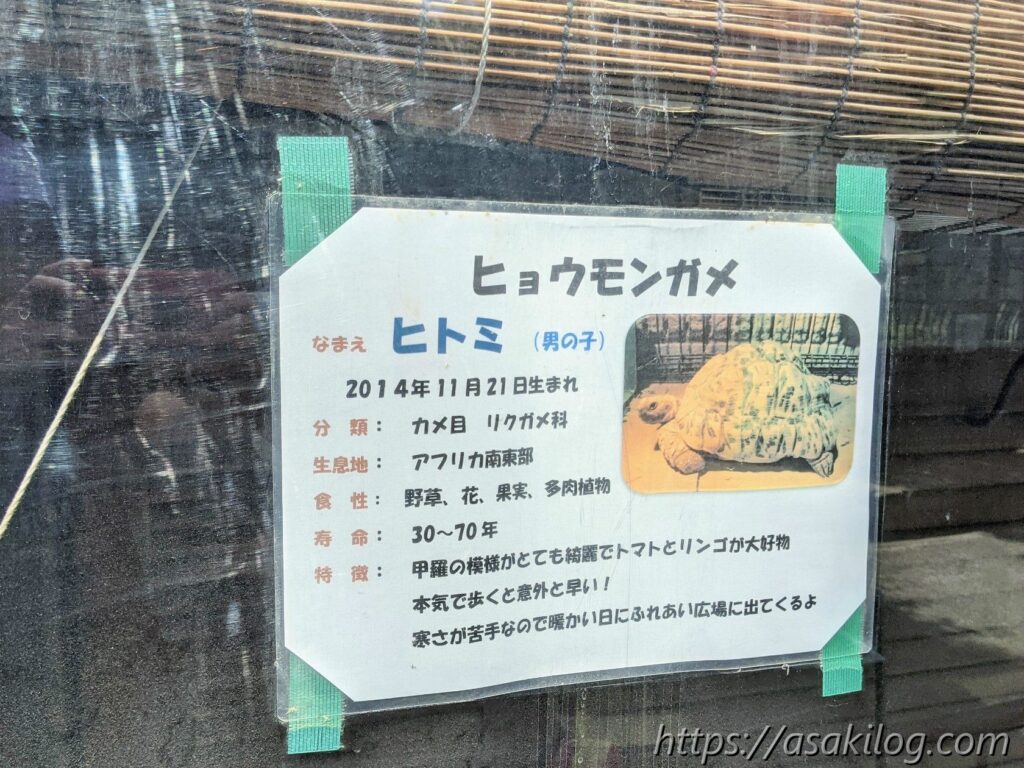 カメは、ヒョウモンガメの「ヒトミ君」と、