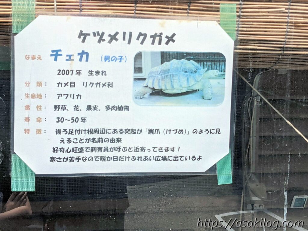 ケツメリクガメの「チェカ君」がいました。どちらも意外と大きかったな~。