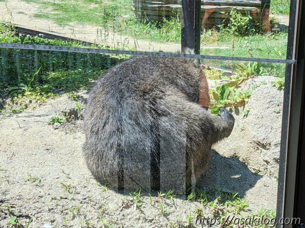 そしてワインさんの隣で元気に遊ぶ姿を見せてくれていたのが、ウォンバットのユキさん♀。ゴソゴソと穴に潜ったり、ワンコのように背中をポリポリする姿がユニークでした。