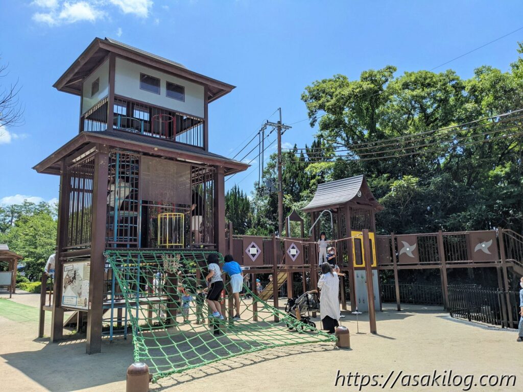 五月山動物園で遊んだあとは、娘が遊具広場で遊ぶことに。写真は遊具広場の手前にあった「芝生広場」。お弁当を持参して、ここでのんびり過ごすのも良さそうです。