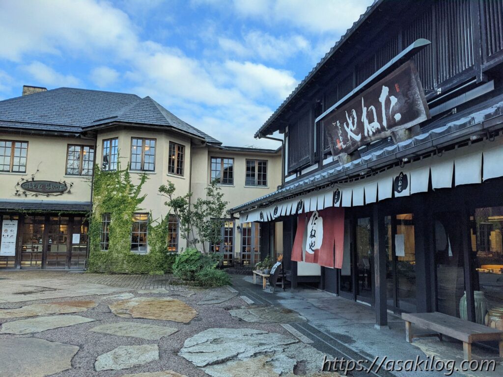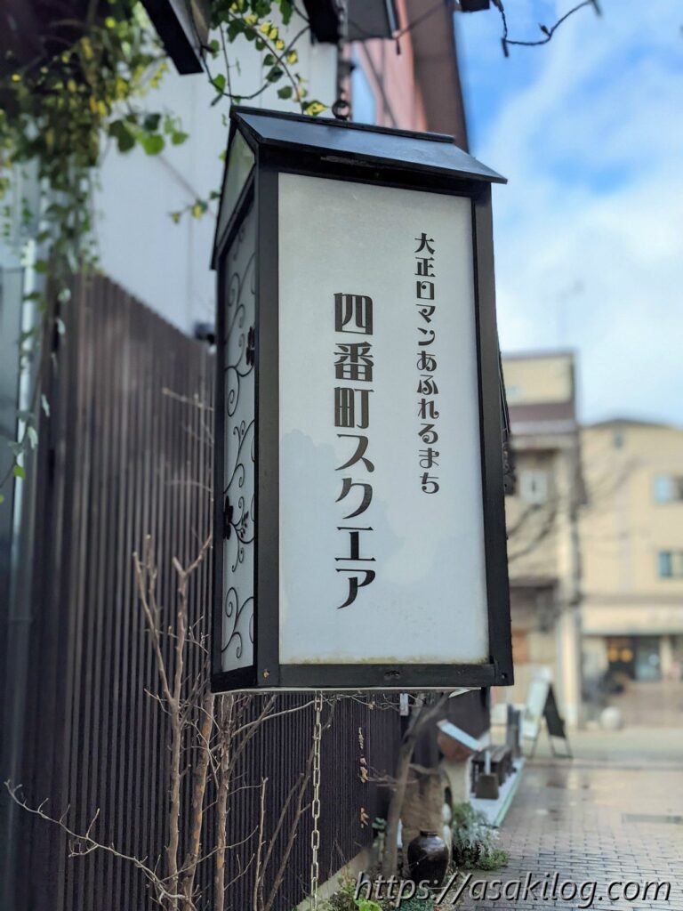 「四番町スクエア」は、かつて「彦根の台所」としてにぎわった本町商店街を再現した場所。大正洋風建築の建物が並び、大正ロマンあふれる雰囲気がどこか懐かしい街並みです。