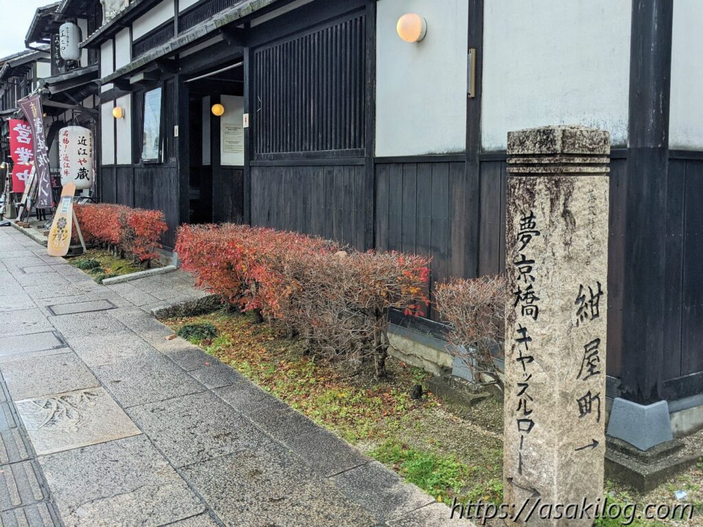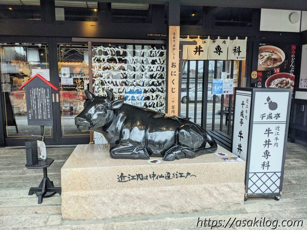いくつもの飲食店・土産物店が並んでいますが、「千成亭 夢京橋店」店頭の近江牛オブジェがとっても立派でした!