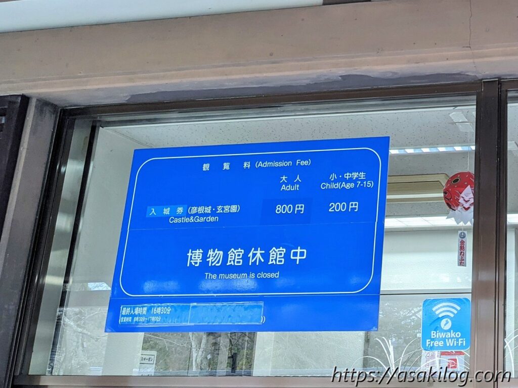 ・入城券(彦根城・玄宮園):1,800円(大人2人×800円、小・中学生1人×200円)