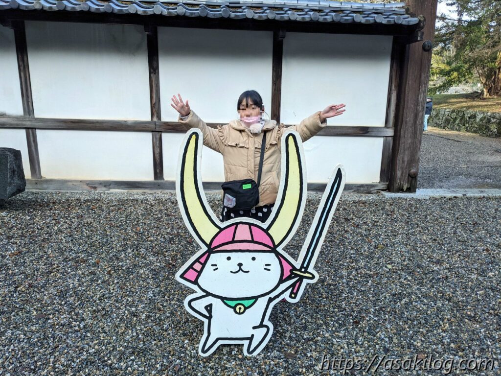 ただ一緒に写真を撮れなかったのが残念。娘は悔し紛れ?に、博物館出口のひこにゃんオブジェと写真を撮影しました(なんでか変なポーズ)。