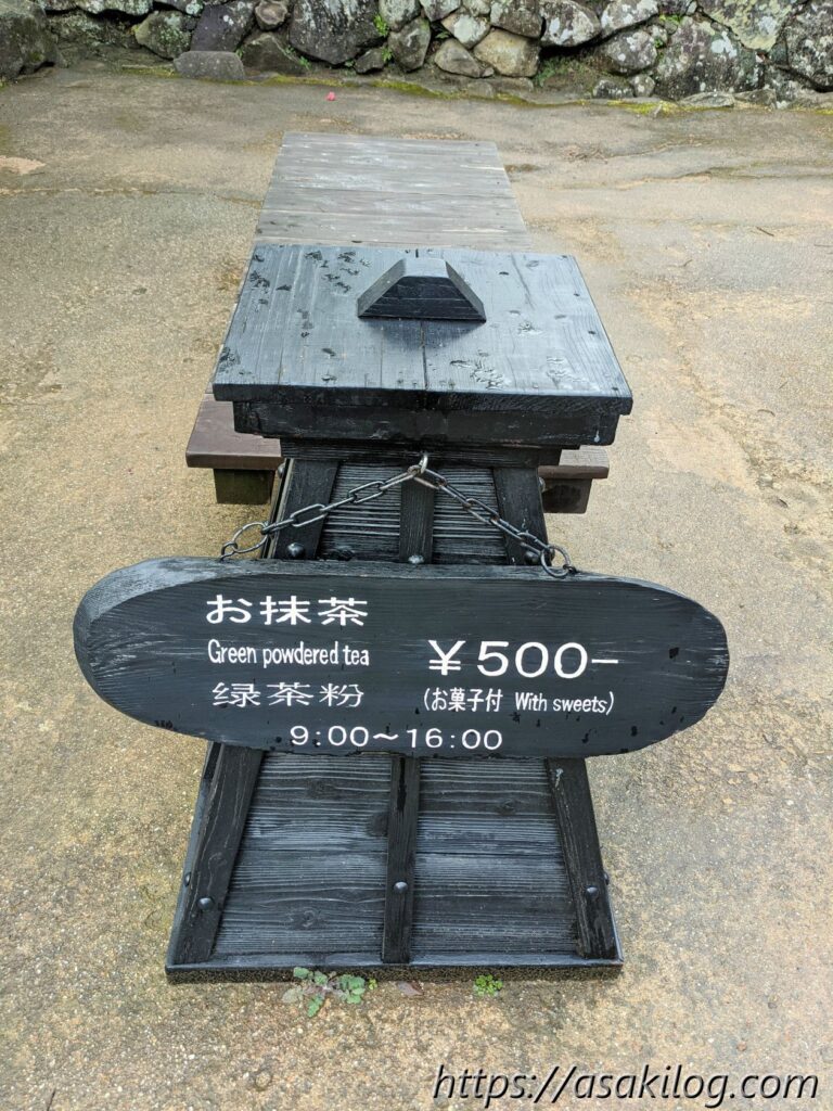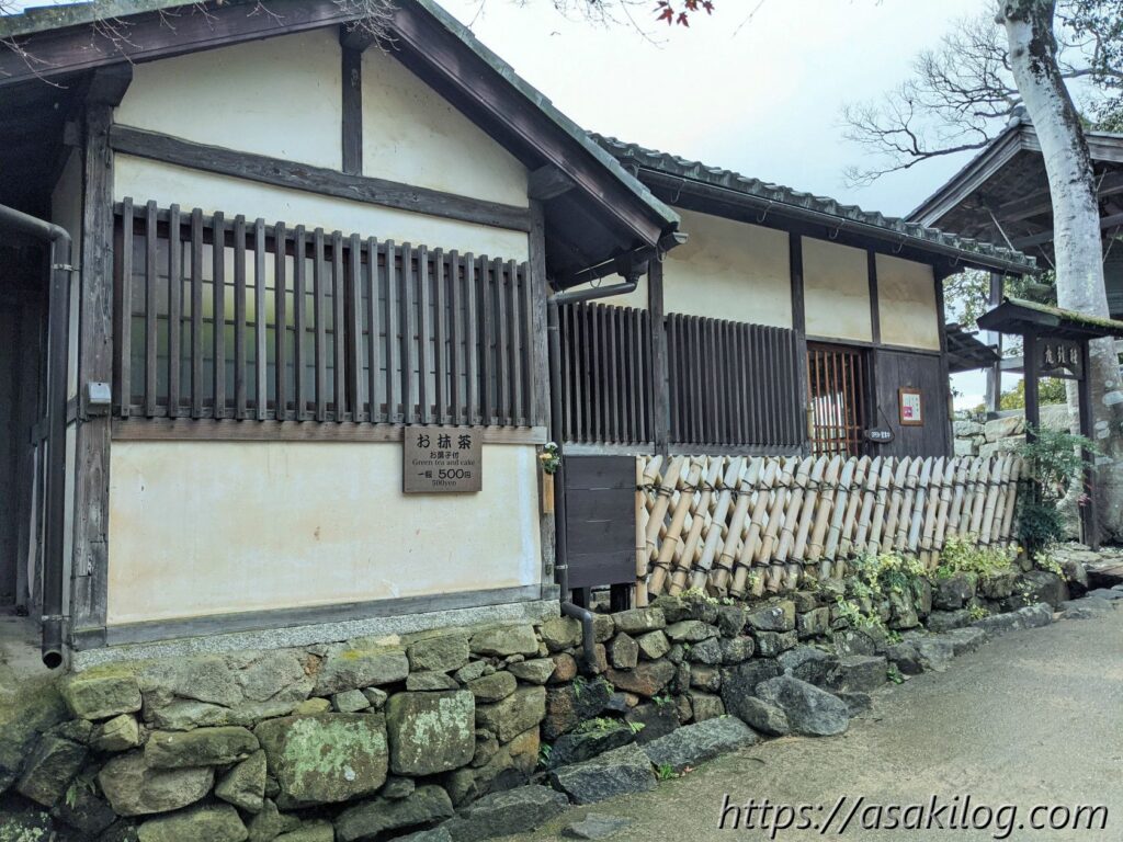 「聴鐘庵(ちょうしょうあん)」は、薄茶(お菓子付500円)を楽しめるお茶屋さん。この日は小雨の降る寒い日だったため、外でお茶している人はいませんでした。