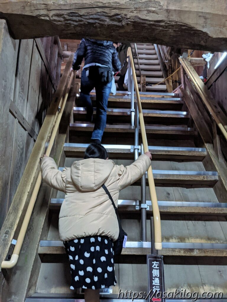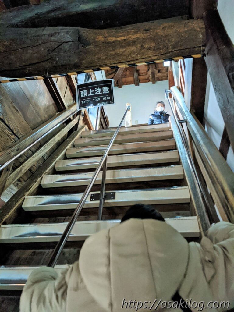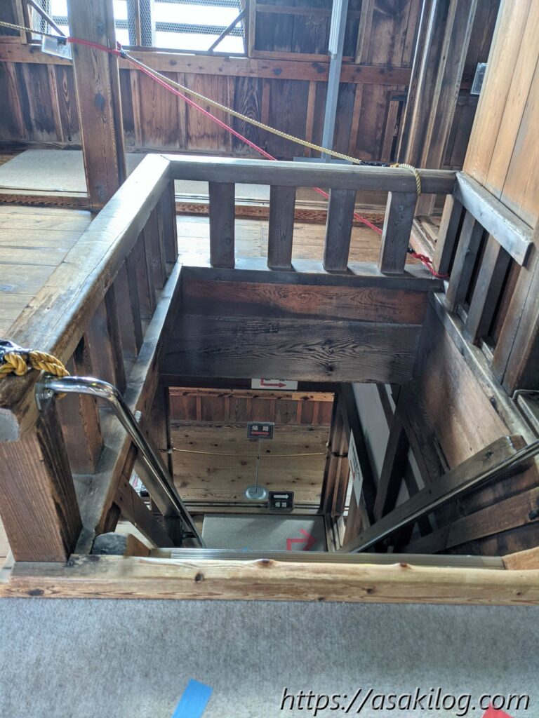2階階段上り口から3階へ。またもや急な階段を上っていきます。上った後に上から見下ろすと、ちょっと怖いくらいの急傾斜。