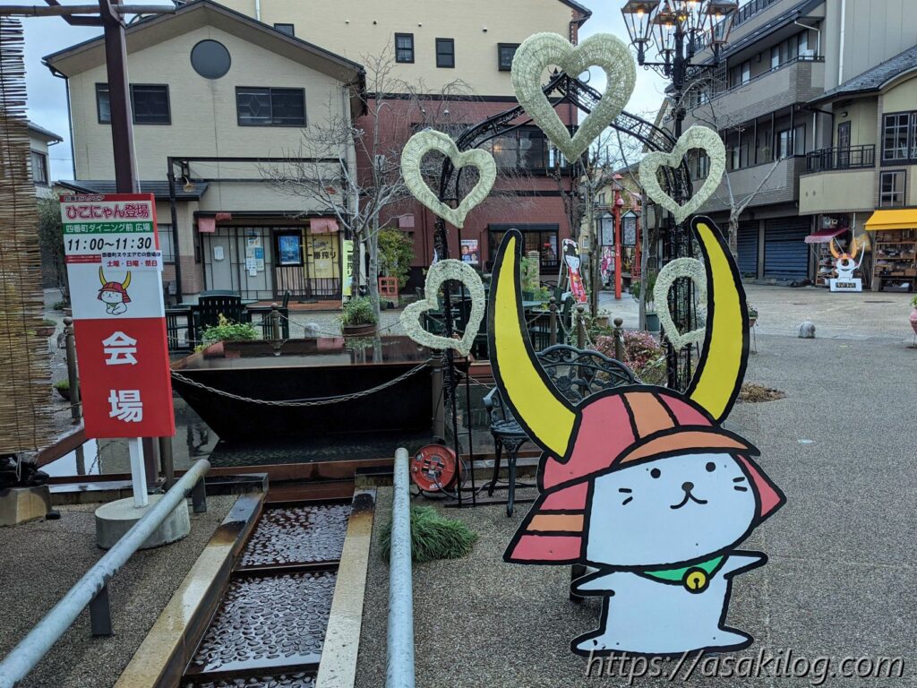 こちらの「四番町ダイニング前 広場」では、土日祝日にひこにゃんが登場しているそう。私が遊びに行ったのは平日だったので、ここでは会えませんでした。